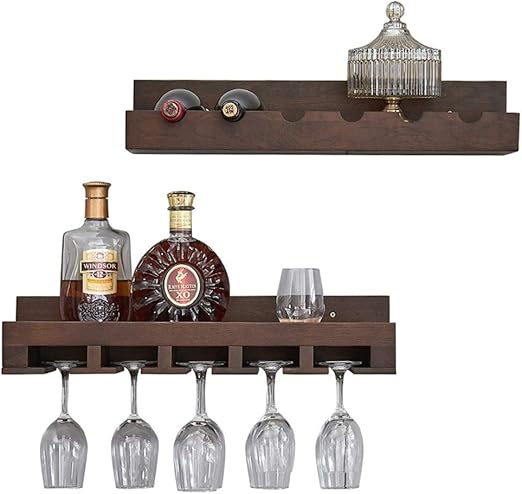 Zaqi Botellero Estante Para Vino Montado En La Pared De Madera Barra De Cocina Adorno Para El Hogar Del Sotano Ahorre Espacio De Almacenamiento De Exhibicion De Espacio Marron Amazon Es Hogar