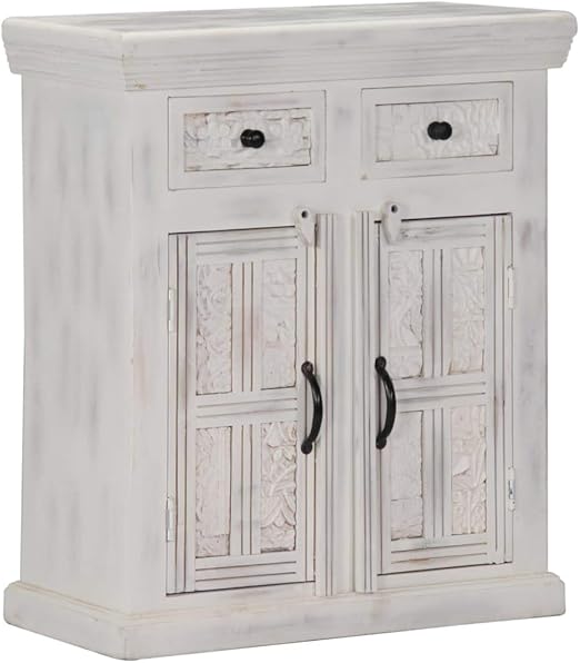 Unfadememory Aparador Comedor Aparador Para Salon Con 2 Cajones Y 2 Puertas Madera Maciza De Mango 65x30x75cm Blanco Amazon Es Hogar