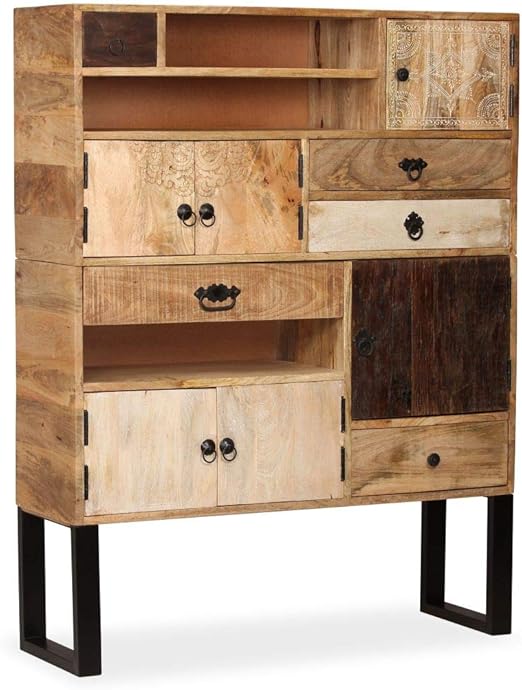 Unfadememory Aparador Comedor Aparador Para Salon Con 3 Estantes 4 Armarios Y 5 Cajones Estilo Vintage Madera Maciza De Mango 100x30x130cm Amazon Es Hogar