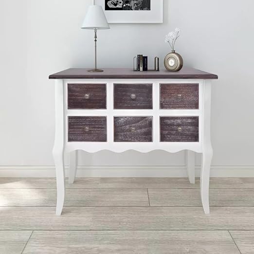 Shengfeng Aparadores Modernos Marron Y Blanco Con 6 Cajones Aparador Comedor Aparador Auxiliar De Madera Dimensiones 80 X 36 X79 Cm Amazon Es Hogar
