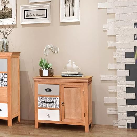 Shengfeng Aparadores Modernos Roble Con 4 Cajones Aparador Comedor Aparador Auxiliar Mdf Madera Dimensiones 60 X 30 5 X 71 Cm Amazon Es Hogar