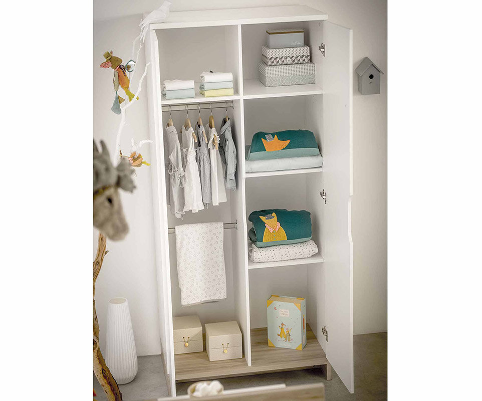Armario Para Bebe En Blanco Y Madera Pluma