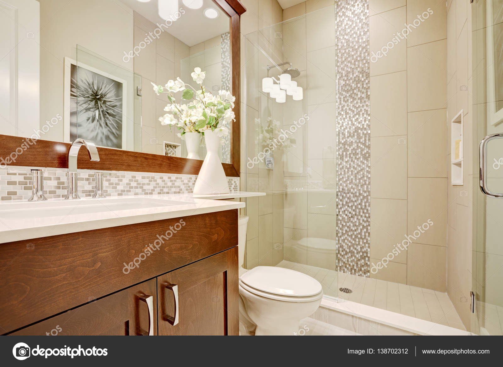 Interior De Bano Blanco Con Ducha De Vidrio Y Bano Interior De Bano Blanco Con Azulejo Beige Ducha De Vidrio Y Bano