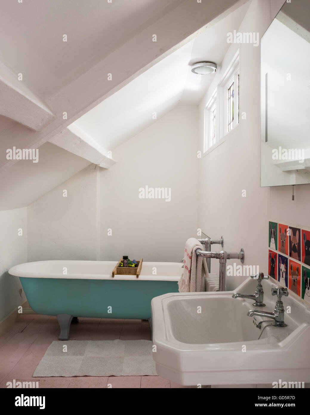Roll Top Banera Y Lavabo Vintage En Buhardilla Bano Fotografia De Stock Alamy