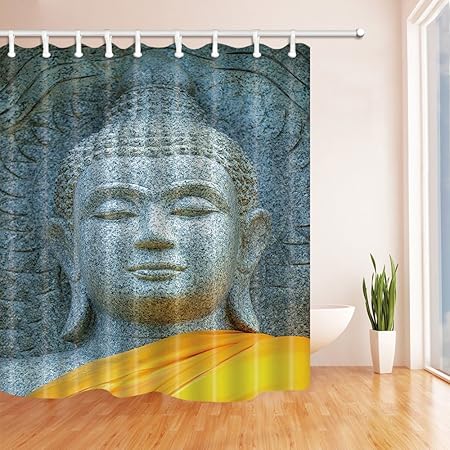 Zen Decor Cortinas De Ducha De Tela De Poliester Para Bano O Ducha Diseno De Buda De Granito Con Estampado De Rayas Amarillas Amazon Es Hogar