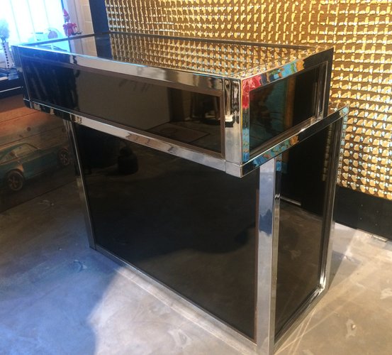 Barra De Bar Vintage De Vidrio Laton Y Metal Cromado En Venta En Pamono
