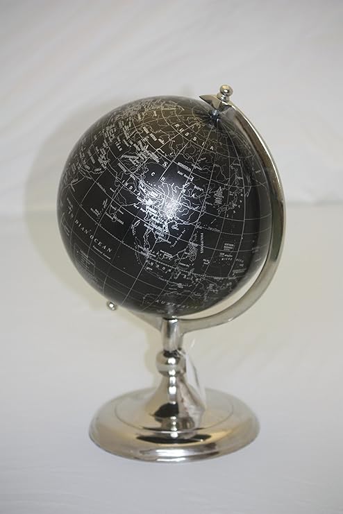 20 Cm Negro Moderno De La Bola Del Mundo Con Plata Para Oficina Y Hogar Decoracion Amazon Es Hogar