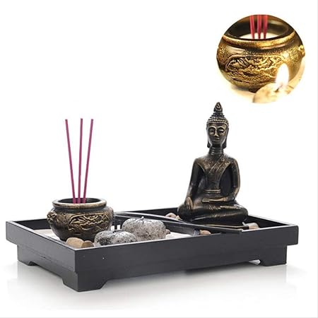 Rqgb Adornos Casa Buda Estatua Zen Jardin Arena Meditacion Pacifica Relajese Decoracion Set Espiritual Buda Quemador De Incienso Feng Shui Decoracion Amazon Es Hogar