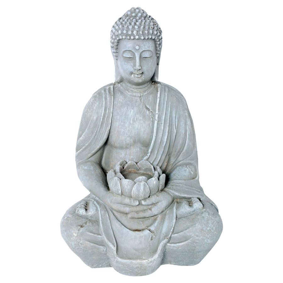 Impermeables Escultura De Polirresina Decoracion Para Hogar Casa Y Jardin Figura De Buda Con Portavelas 27 Cm De Altura Woma Color Gris Hogar Y Cocina Estatuas