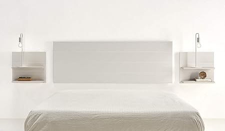 Hogar24 Es Cabecero 2 Mesitas De Madera Con Estantes Color Blanco Medidas Cabecero 155 X 60 X 2 Cm Amazon Es Hogar