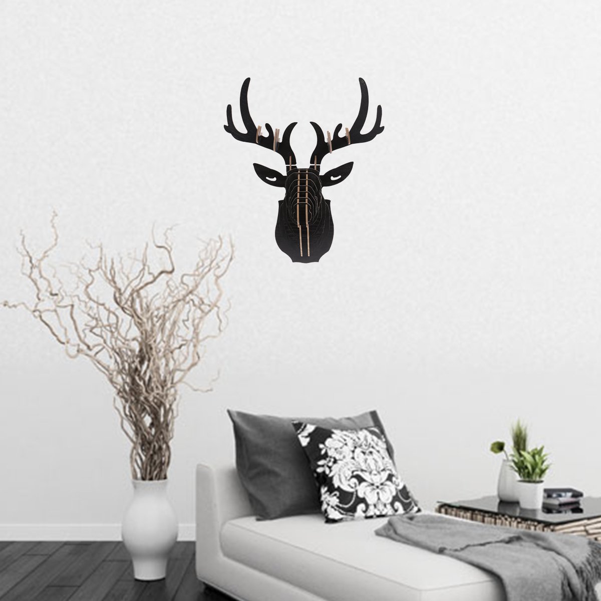 Negro Vosarea Cabeza Ciervo Percha Gancho Pared Vintage Rustico Puzzle 3d Madera Pared Salon Decoracion Creeo Com Br