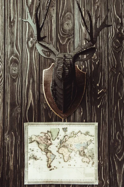 Trofeo En Forma De Cabeza De Ciervo Tallado En Madera