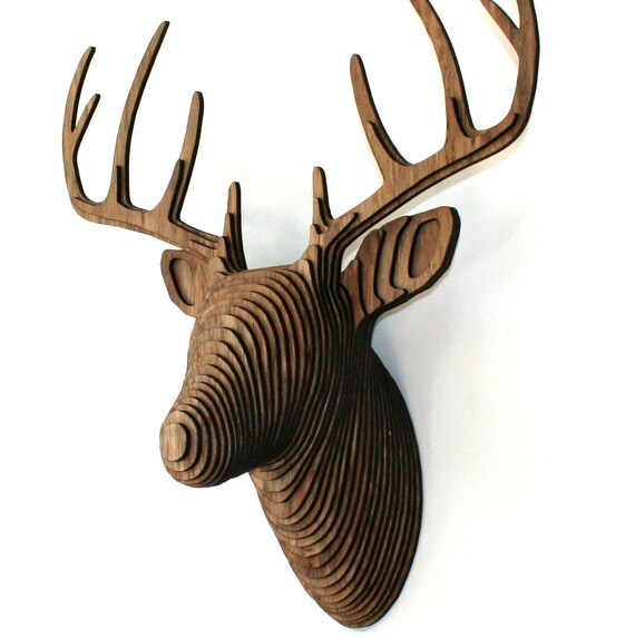 Cabeza De Ciervo De Madera Walnut Ombre Falsa Taxidermia Etsy