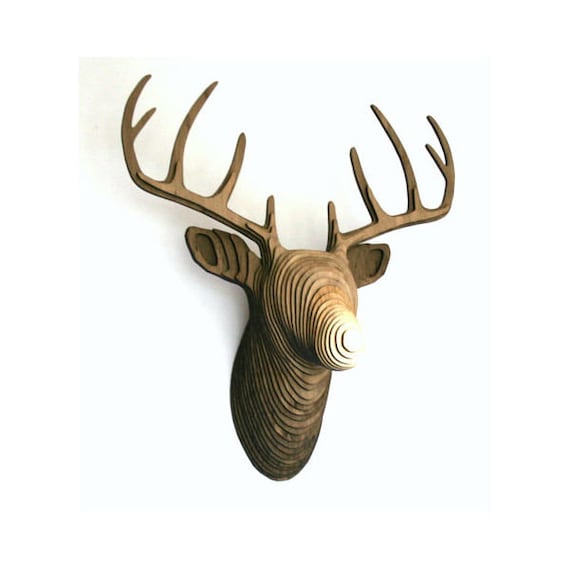 Xl Cabeza De Ciervo De Madera Trofeo Birch Madera Ciervo Etsy