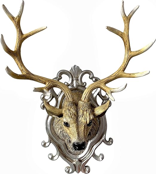 Amazon Com Sxbishdt Decoracion De Cabeza De Ciervo Decoracion De Pared Adornos De Pared Resina De La Suerte Para Colgar En La Pared Home Kitchen