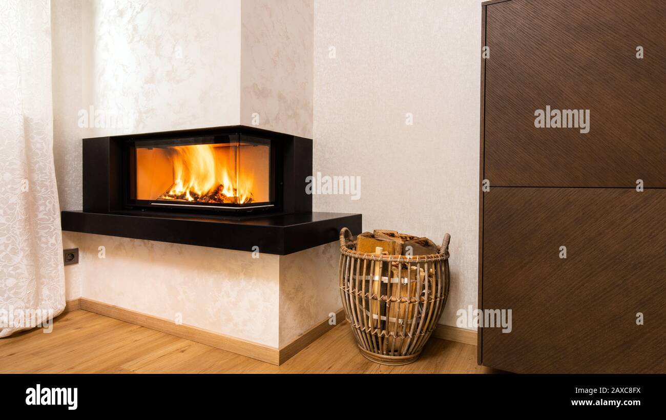 Moderna Y Minimalista Chimenea En La Esquina De La Habitacion Fotografia De Stock Alamy