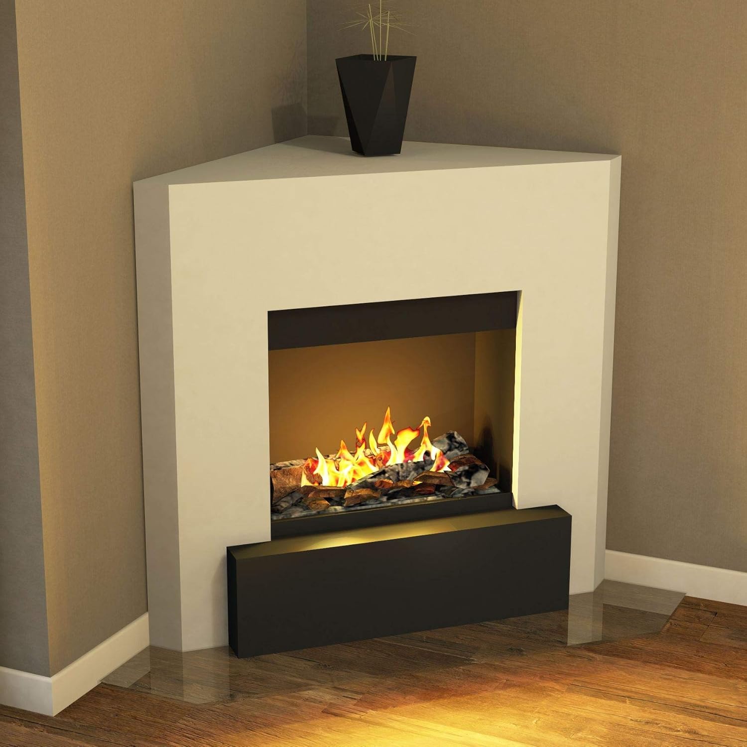 Amazon Com Modhaus Living Chimenea Electrica Convertible De Esquina De Piedra Sintetica De Transicion Moderna Blanca Con Detalles De Ladrillo Incluye Boligrafo Home Kitchen